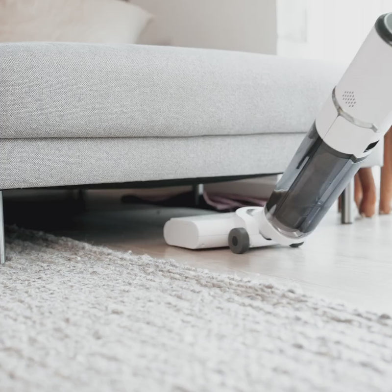 Den trådløse Wet & Dry Floor Cleaner fra Sjö støvsuger og vasker samtidig, med trækkraft og varmluftstørring, så gulve bliver rene og tørre uden besvær.